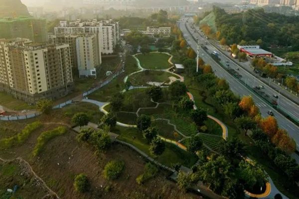 設計方案大膽摒棄了“視覺生態”思想,遵循“打造一條獨具山城特色的、掩映在自然生長的森林中的綠色公園大道”的總體設計理念,深入挖掘茶園大道獨特的地理條件和景觀優勢,通過嚴謹整合的系統性設計,打造了“多樣真實、貼合場地實際的生態環境”,實現了功能與美學的完美結合。將綠色生態理念根植于項目的每一處實踐是設計團隊矢志不渝的追求,設計團隊秉持對自然、對綠色、對生命的尊重態度,精雕細琢,把項目自然條件發揮到極致。一方面,充分利用廢舊石塊荒料,打造巖石園生境,就地取材廢舊木材,制作成籬笆、兒童活動木樁,延續了場地記憶;另一方面,注重保護路側原生態林地,修剪整治植株,讓城市森林帶更加適宜人居。